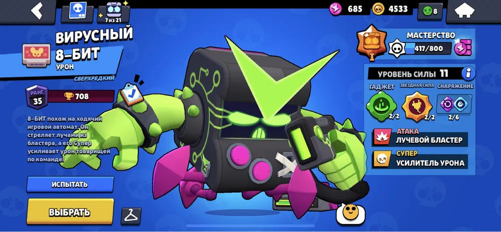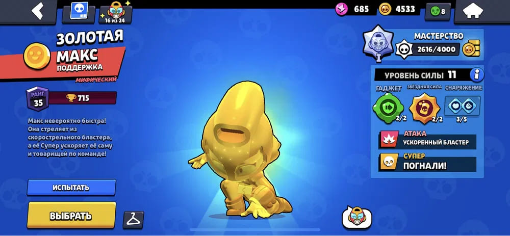 🏆Кубков: 33932; ⭐Уровень: 24; 💪Бойцов: 55/72; ⚡Леги: Леон, Спайк, Амбер, Ворон, Сэнди, Мег;