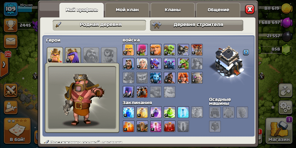 💪Герои уровень: Король (17), Королева (14);