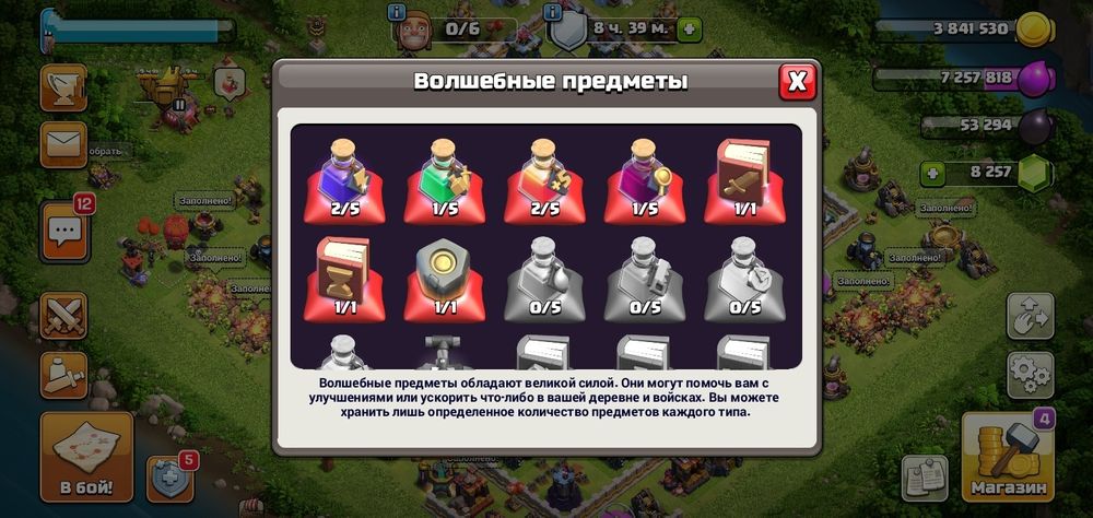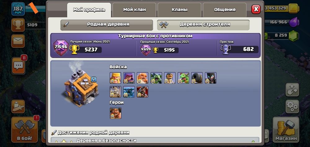 💪Герои уровень: Король (58), Королева (76), Хранитель (47), Чемпион (21);