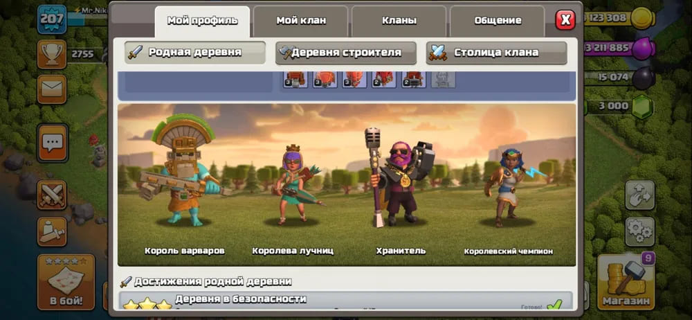 💪Герои уровень: Король (65), Королева (75), Хранитель (42), Королевский Чемпион (9);
