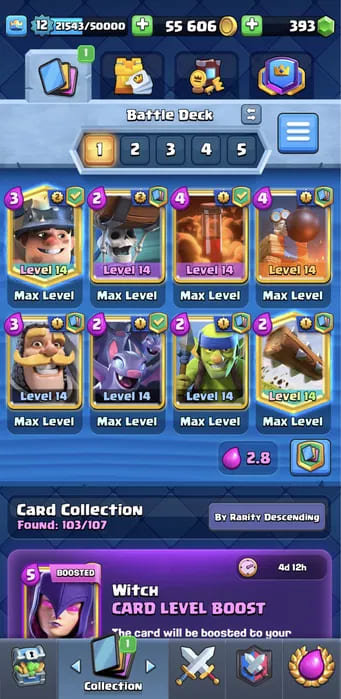 🃏Карты: 103/107; ⚡Легендарные карты: 17/18; 🏆Кубки: 5514;