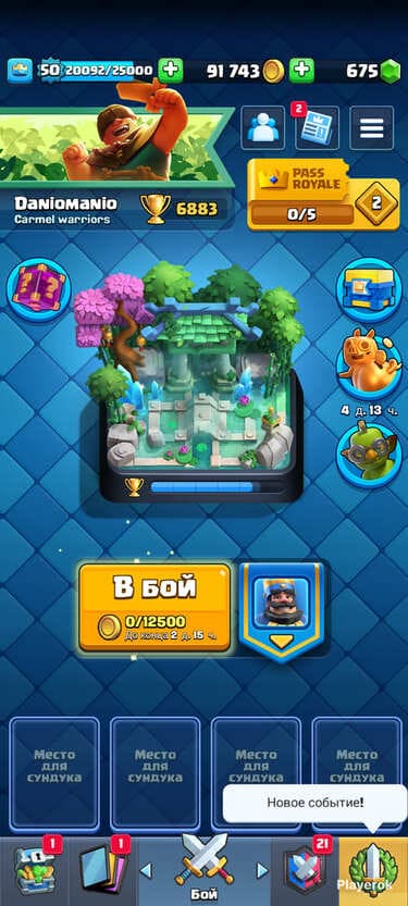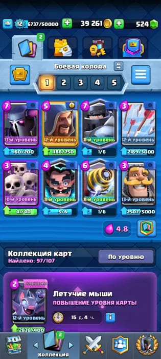 🃏Карты: 97/107; ⚡Легендарные карты: 17/18; 🏆Кубки: 4435;