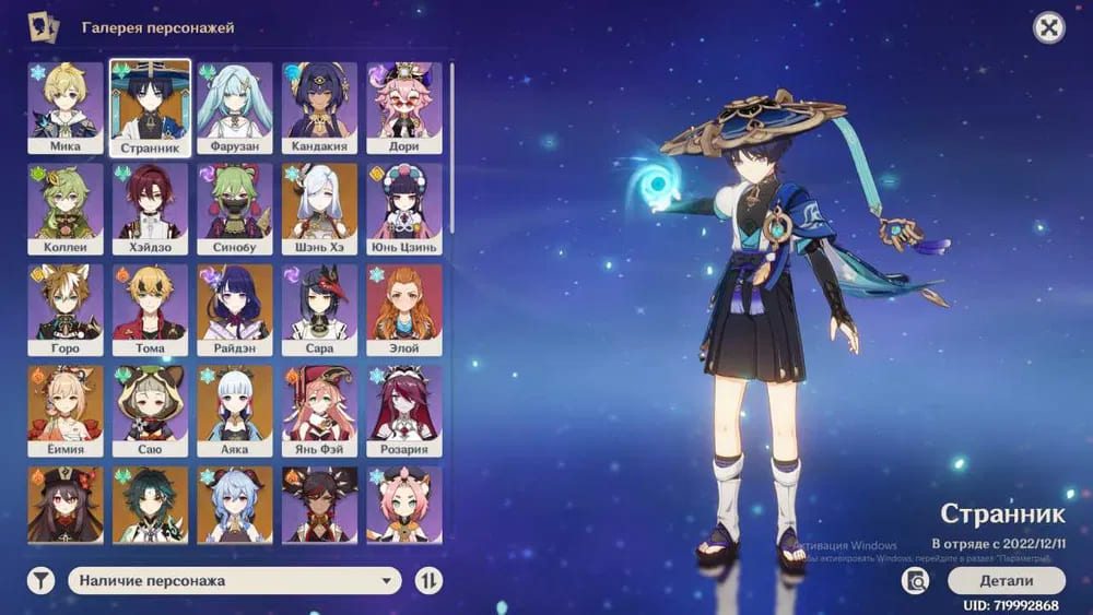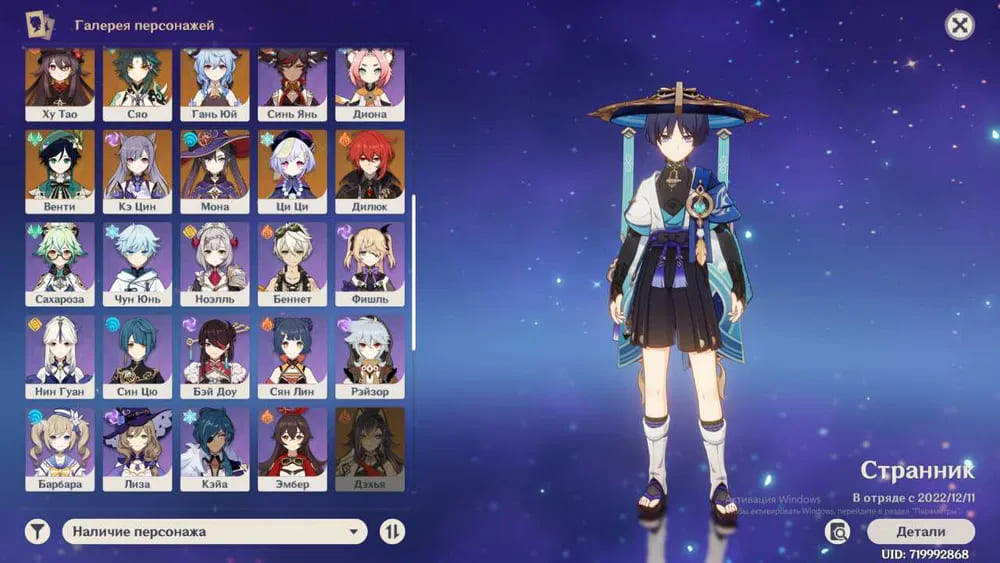 🧍♀️ Персонажи: Странник, Ху Тао, Сяо, Шэнь Хэ, Райден, Ёимия, Аяка, Гань Юй, Венти, Мона, Дилюк, Ци Ци и другие