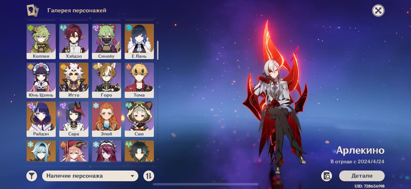 🧍♀️ Персонажи: Арлекино, Нахида, Тигнари и другие