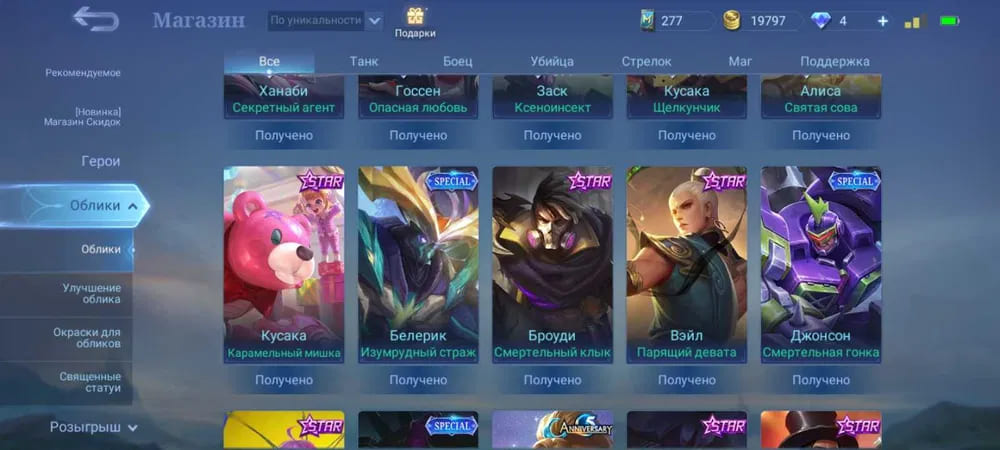 💪Количество открытых героев: 83;