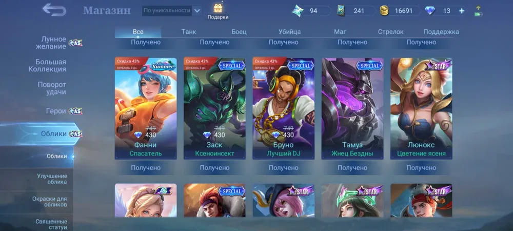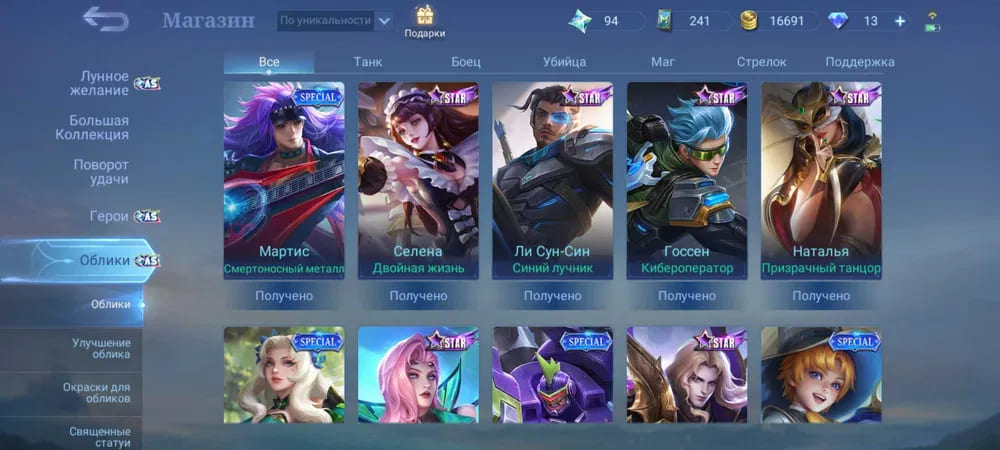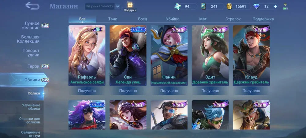 💪Количество открытых героев: 69;