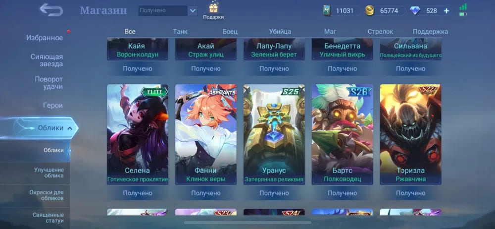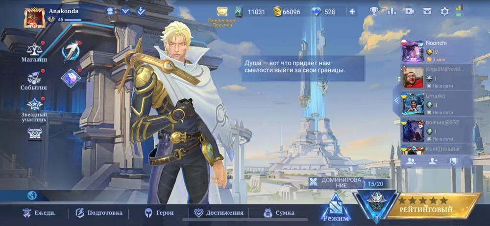💪Количество открытых героев: 58;