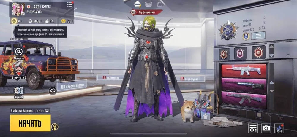 👚Топ костюмы: 15;⭐️Royale Pass: с 3 сезонна;🌈Скины на оружие: 4;