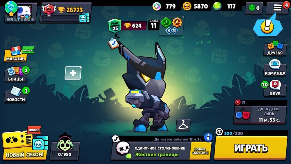 🏆Кубков: 27000; 💪Бойцов: 58/79; ⚡Леги: Леон, Вольт;
