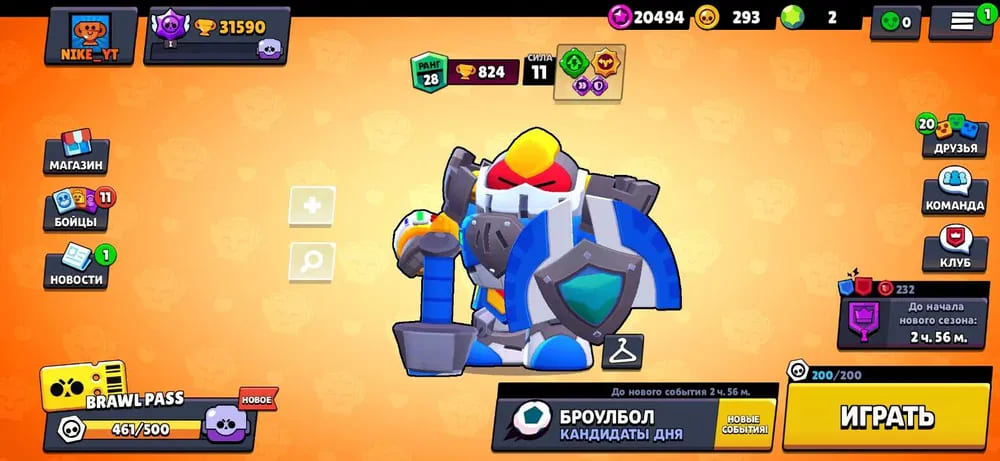 🏆Кубков: 26773; ⭐Уровень: 221; 💪Бойцов: 60/72; ⚡Леги: Леон, Мэг, Спайк, Честер, Ворон, Сэнди, Амбер;