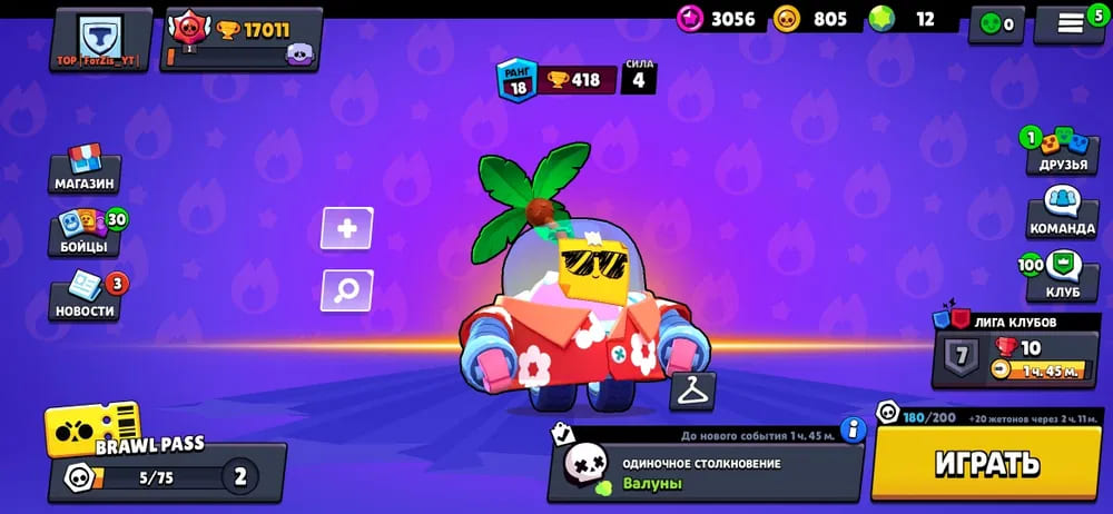 🏆Кубков: 19404; ⭐Уровень: 89; 💪Бойцов: 48/72; ⚡Леги: Леон, Мэг, Спайк, Честер;