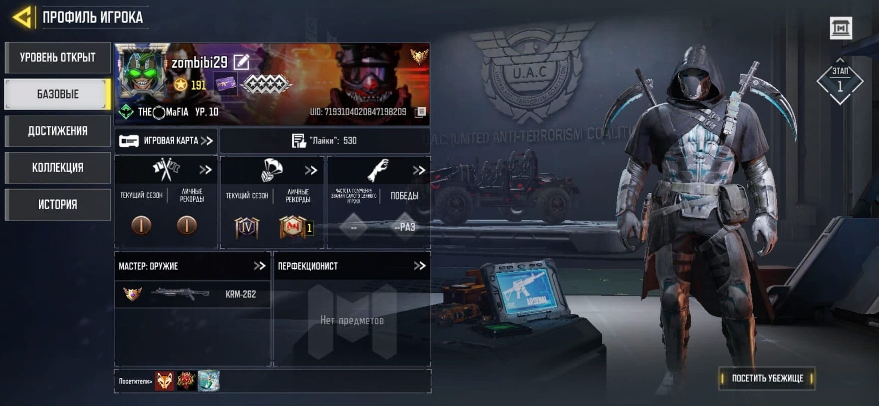 🏅 Ранг: Мастер⭐️ Уровень: 300💰 CP: 120🕹 Игры: 789✅ Все привязки отсутствуют