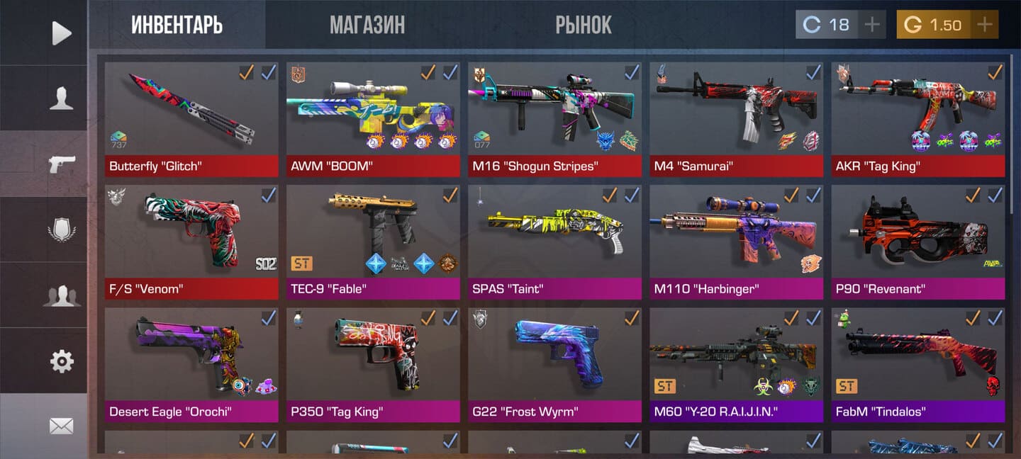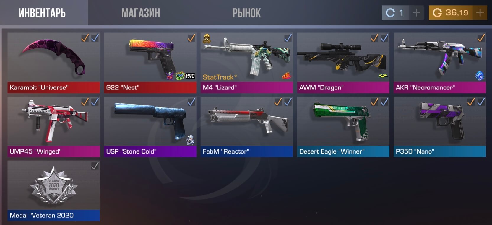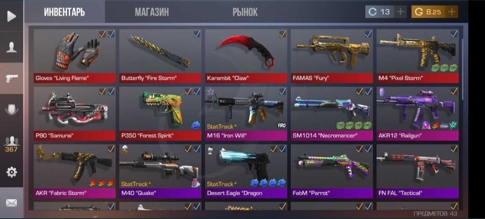 💰Голда: 1.50;🔪Ножи: 1;⭐️Редкие скины: 13