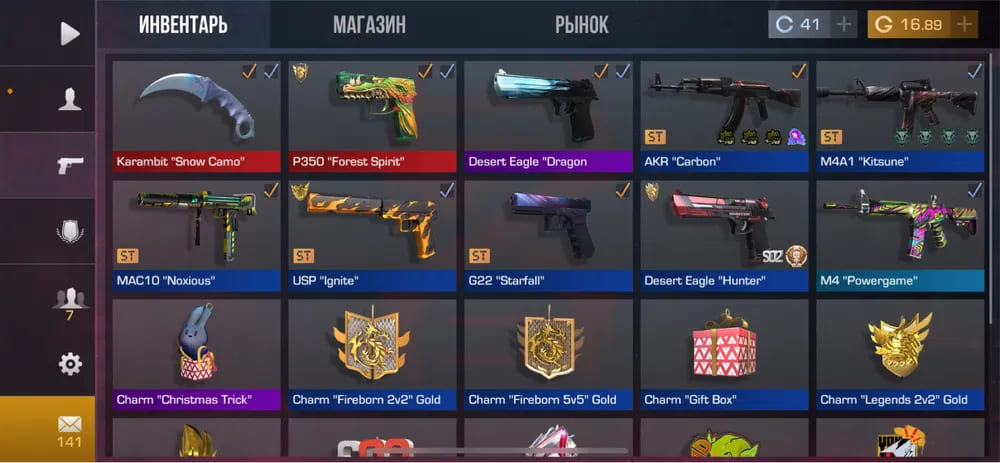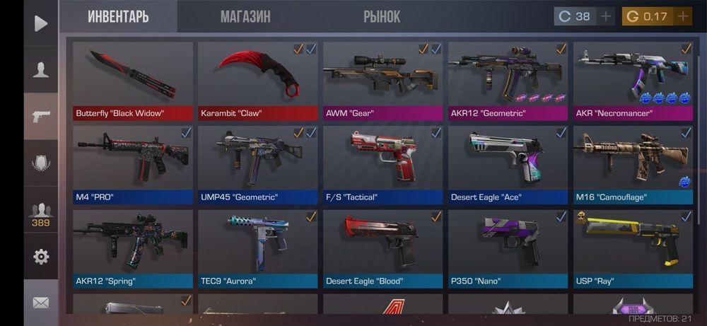 💰Голда: 16.89; 🔪Ножи: 1; ⭐️Редкие скины: 2