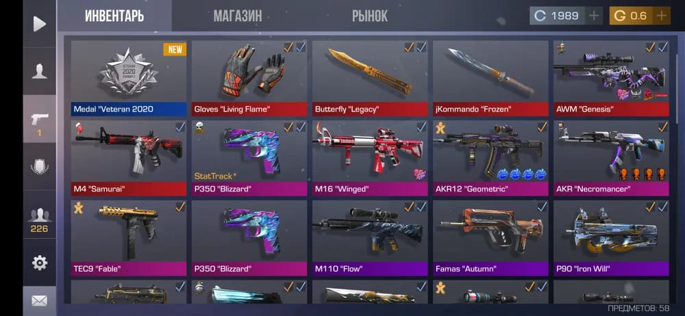 💰Голда: 6234.52; 🔪Ножи: 4; ⭐️Редкие скины: 5