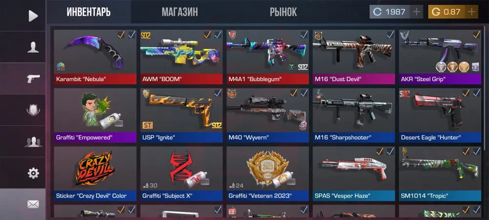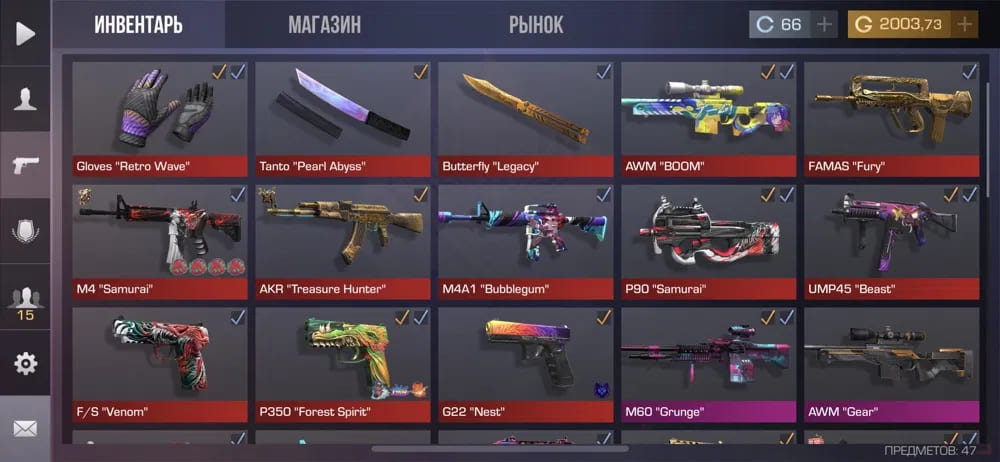 💰Голда: 2003,73; 🔪Ножи: 2; ⭐️Редкие скины: 13