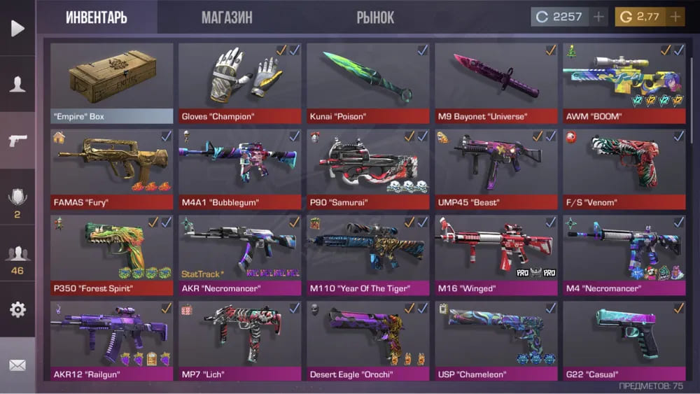 💰Голда: 2.77; 🔪Ножи: 2; ⭐️Редкие скины: 10"