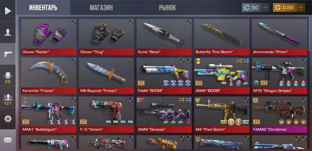 💰Голда: 0.86;🔪Ножи: 5;⭐️Редкие скины: 14
