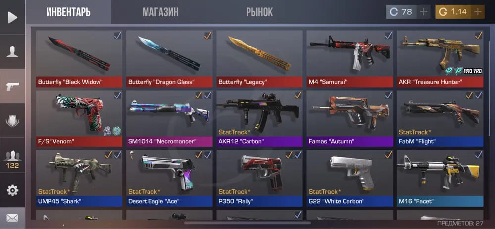 💰Голда: 1.23; 🔪Ножи: 1; ⭐️Редкие скины: 8
