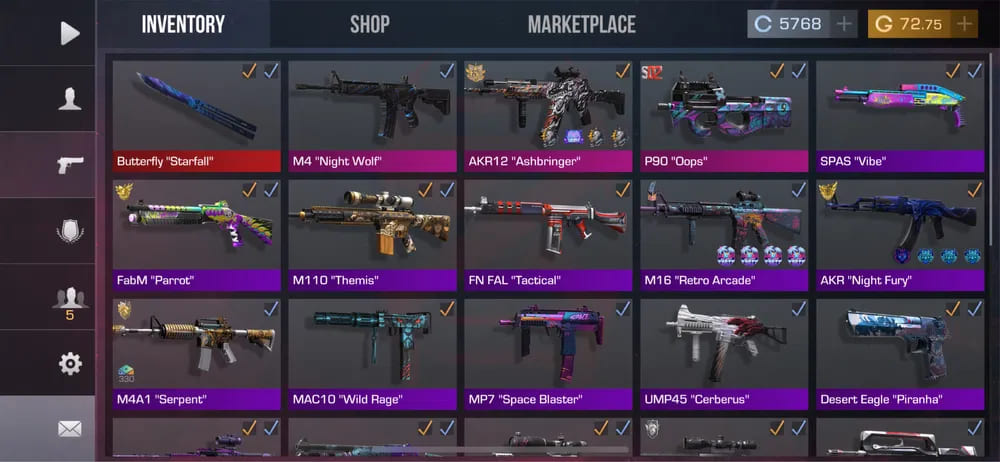 💰Голда: 5.97; 🧤Перчатки: "Stream"; 🔪Ножи: Butterfly "Starfall"; ⭐️Редкие скины: 13