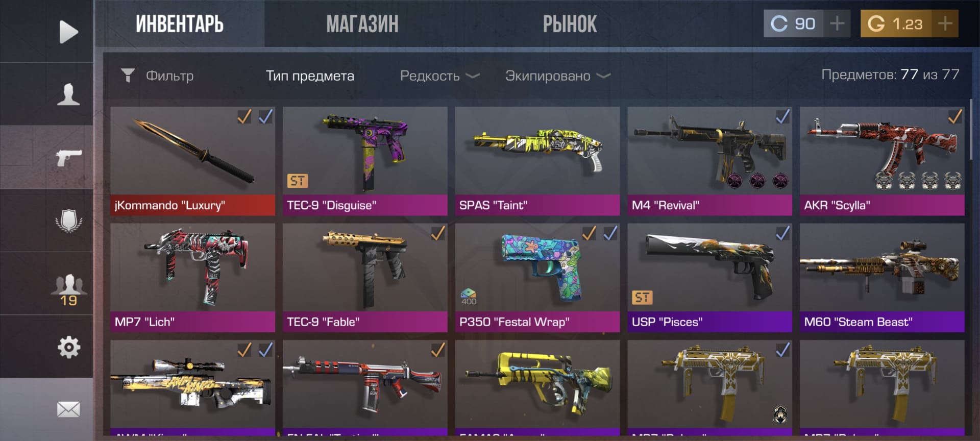💰Голда: 7,67; 🔪Ножи: 1; ⭐️Редкие скины: 1