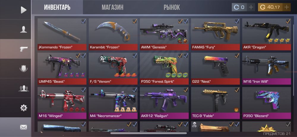 💰Голда:0,49; 🔪Ножи: 1; ⭐️Редкие скины: 21