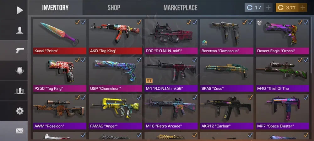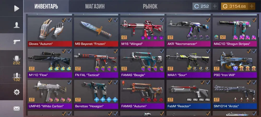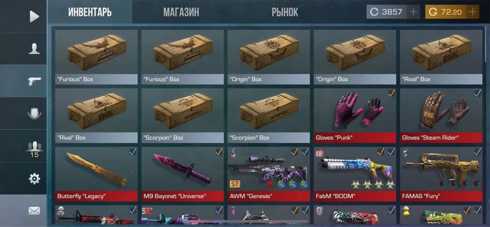 💰Голда: 3154.66;🔪Ножи: 1;⭐️Редкие скины: 2
