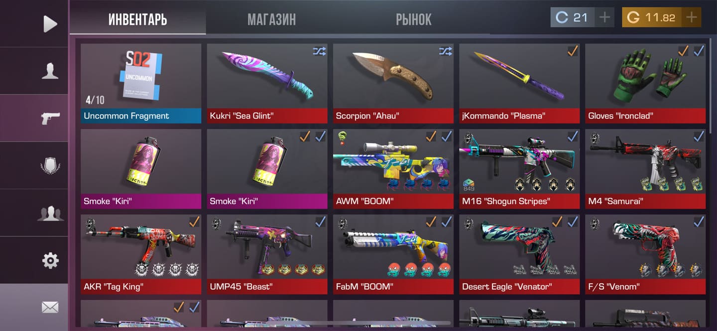 💰Голда: 2.12;🧤Перчатки: 1⭐️Редкие скины: 3