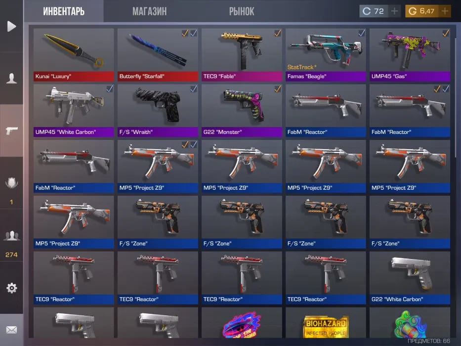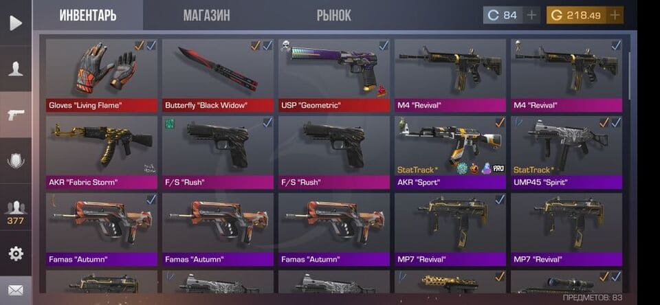 💰Голда: 6.65;🔪Ножи: 3;⭐️Редкие скины: 9