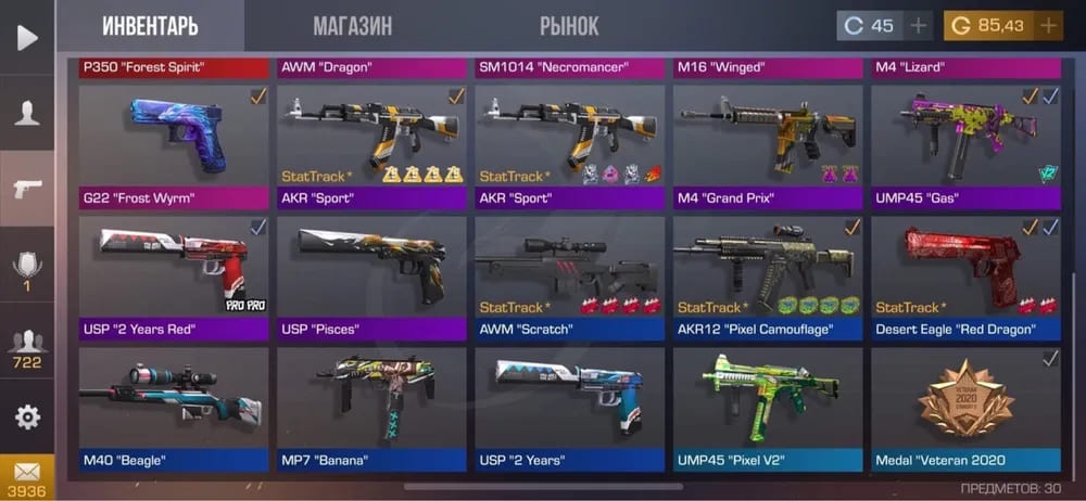 ⭐️Редкие скины: Famas "Fury", P90 "Samurai", UMP45 "Beast", F/S "Venom", P350 "Forest Spirit";
