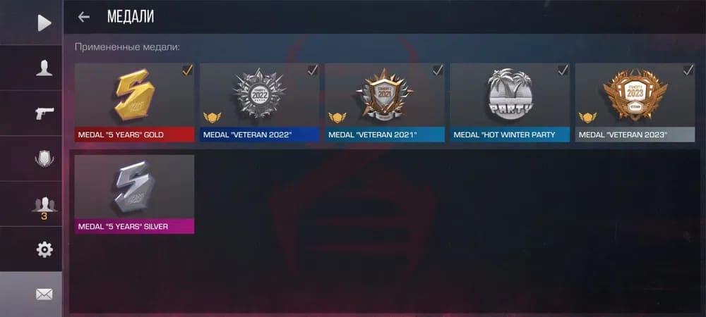🎖Медали: "5 Years"Gold,"Veteran 2021", "Veteran 2022", "Hot Winter Party", "Veteran 2023", "5 Years" Silver;
