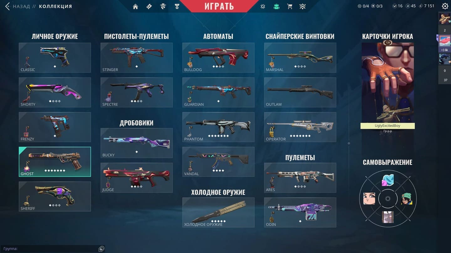 🥈Battle Pass: 1-3 Акт; ✨Агенты: 24; 🔫Скины на оружие: 20+