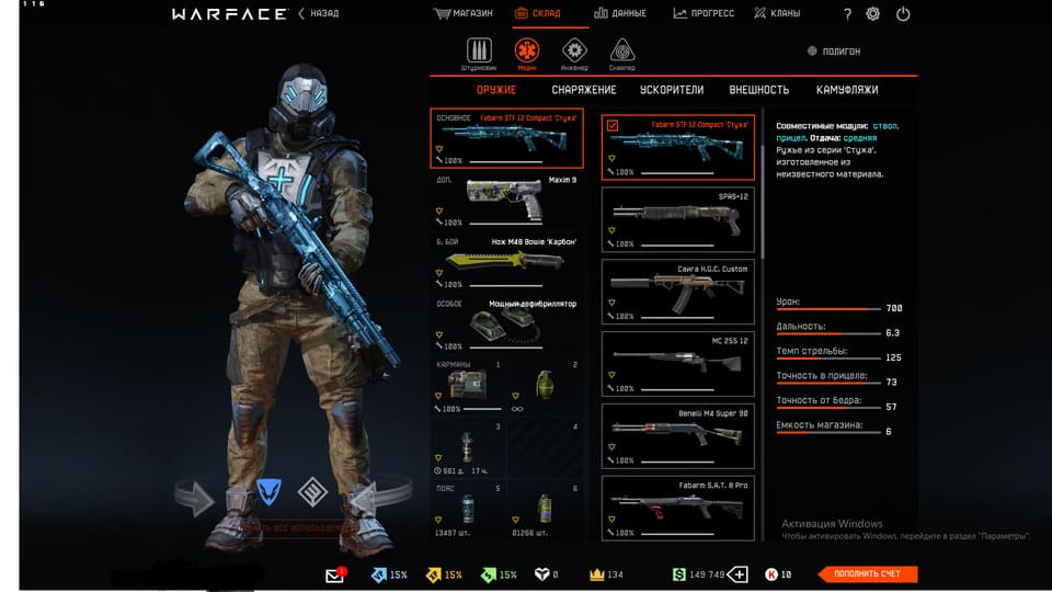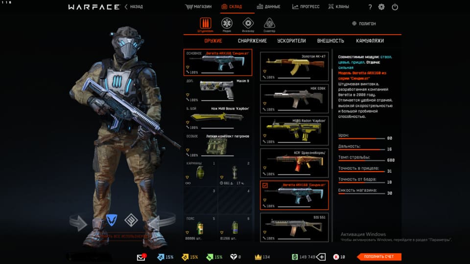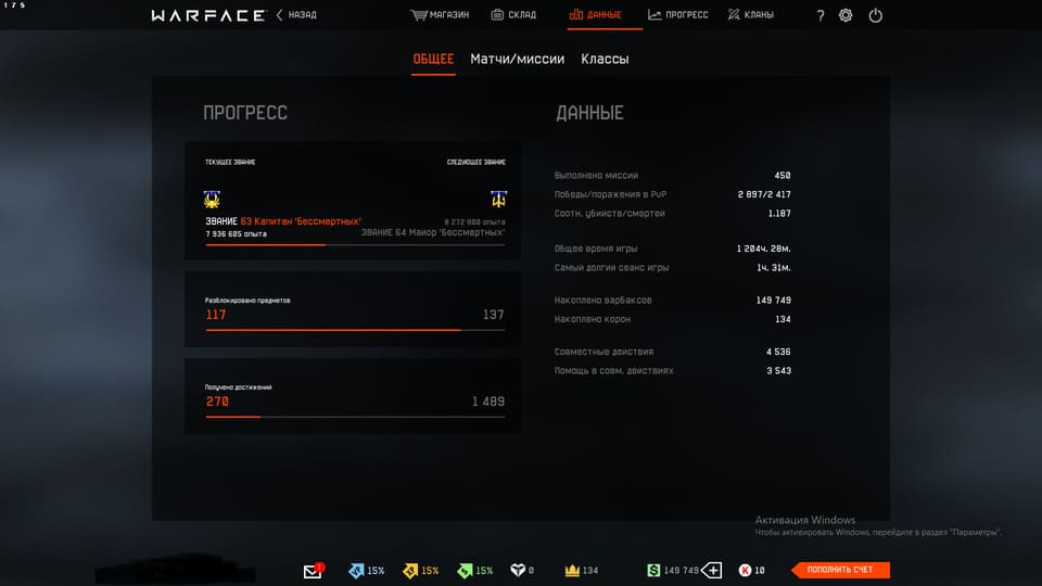 💲Варбаксы - 149 749, 💵Кредиты - 10, 👑Короны - 134;
