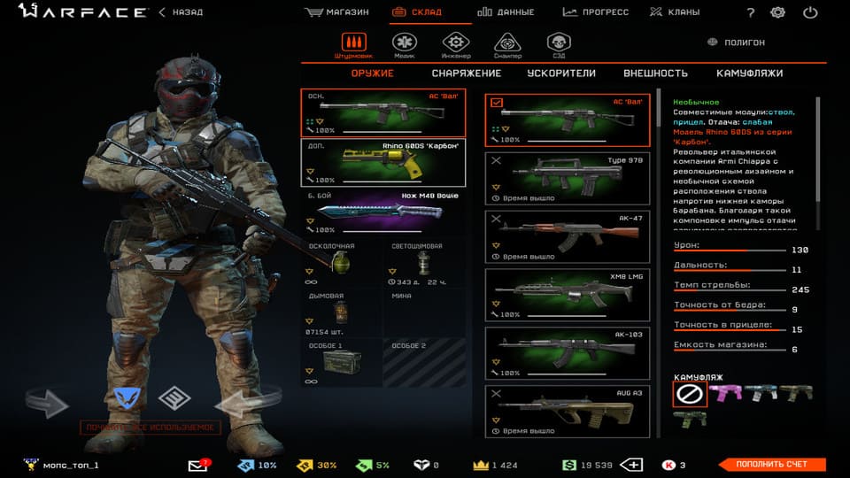 💲Варбаксы - 19 539, 💵Кредиты - 3, 👑Короны - 1 424;