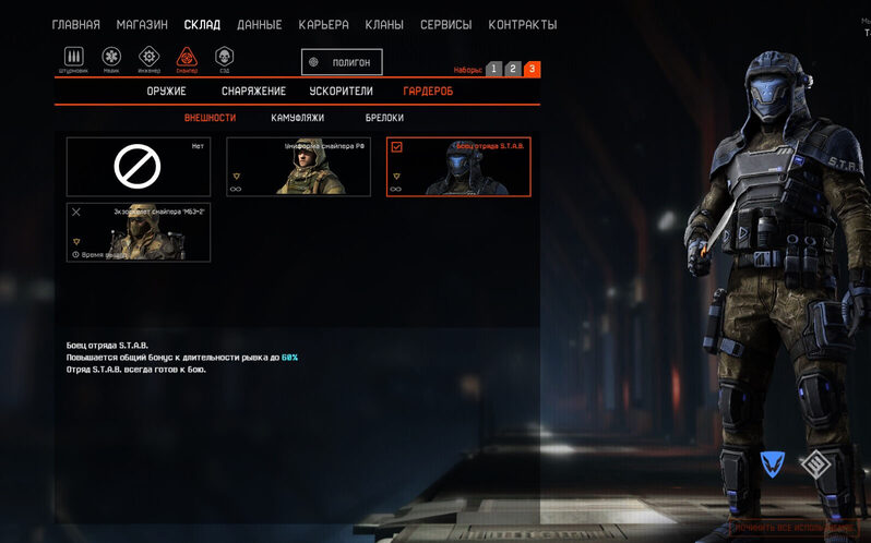 🧥Внешность: Боец отряда S.T.A.B., Униформа снайпера РФ, Миротворец, Нанокостюм медика, Агент Лотос