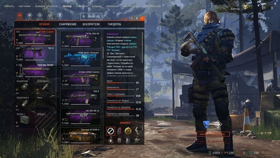 💲Варбаксы - 9,653, 💵Кредиты - 0, 👑Короны - 236;