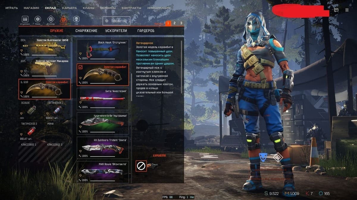 💲Варбаксы - 9,522, 💵Кредиты - 7, 👑Короны - 1009;