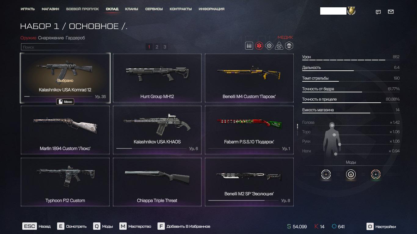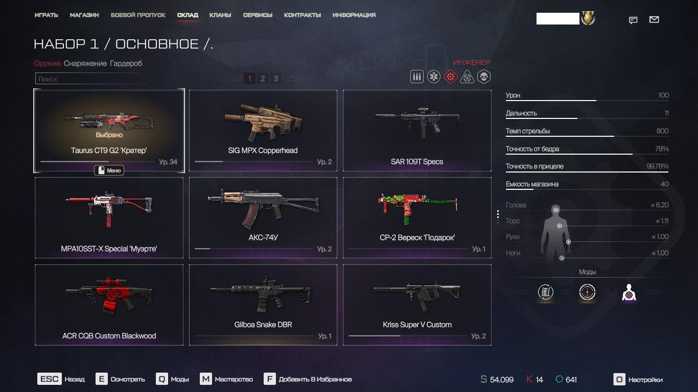 💲Варбаксы - 54099, 💵Кредиты - 14, 👑Короны - 641;